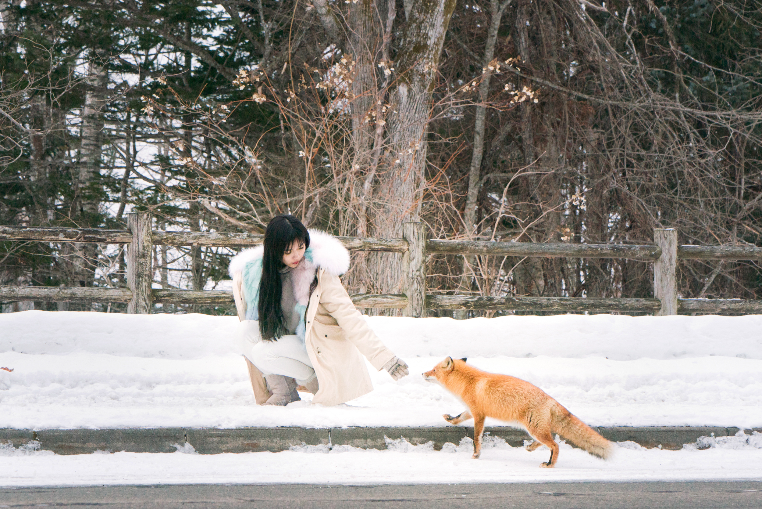 在转场古丹温泉的路上,终于给我们带来了一些惊喜,偶遇了土生土长的北海道野生小狐狸。