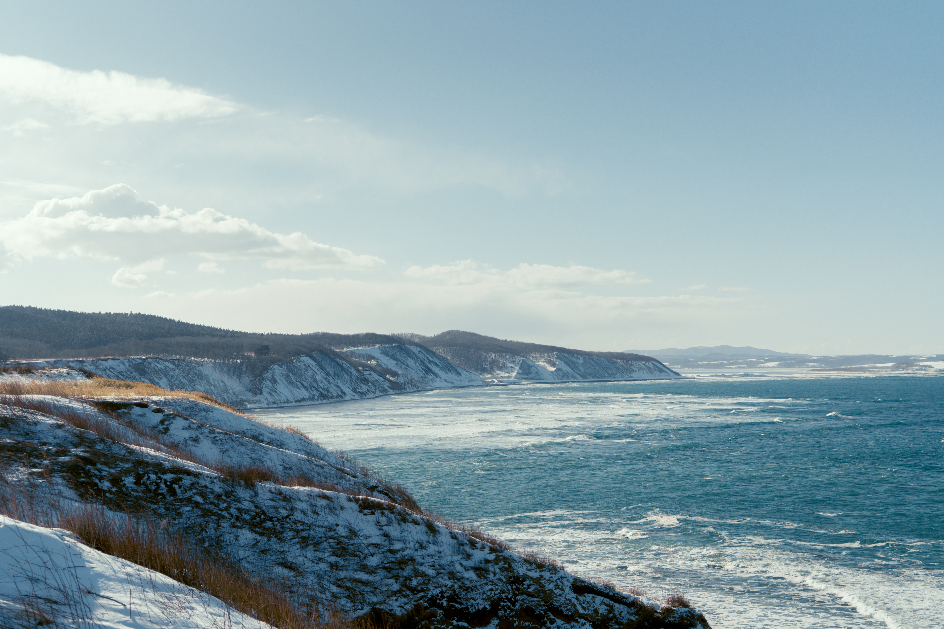 好像日本带山崖的海边,取名都是XX岬,这里挺美的,除了疯狂的海风以外,还能拍到海面上的雪山。