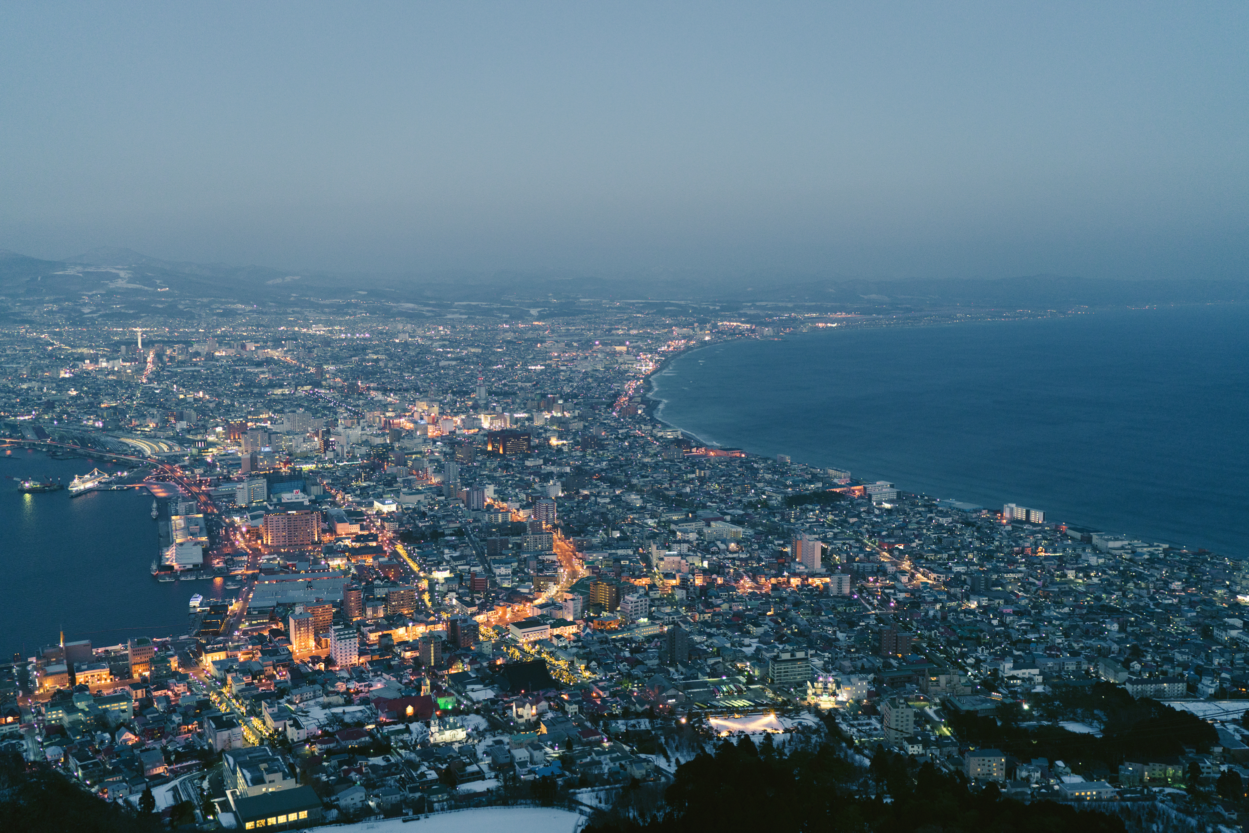 太阳下山没雪的函馆。。。。。。。。