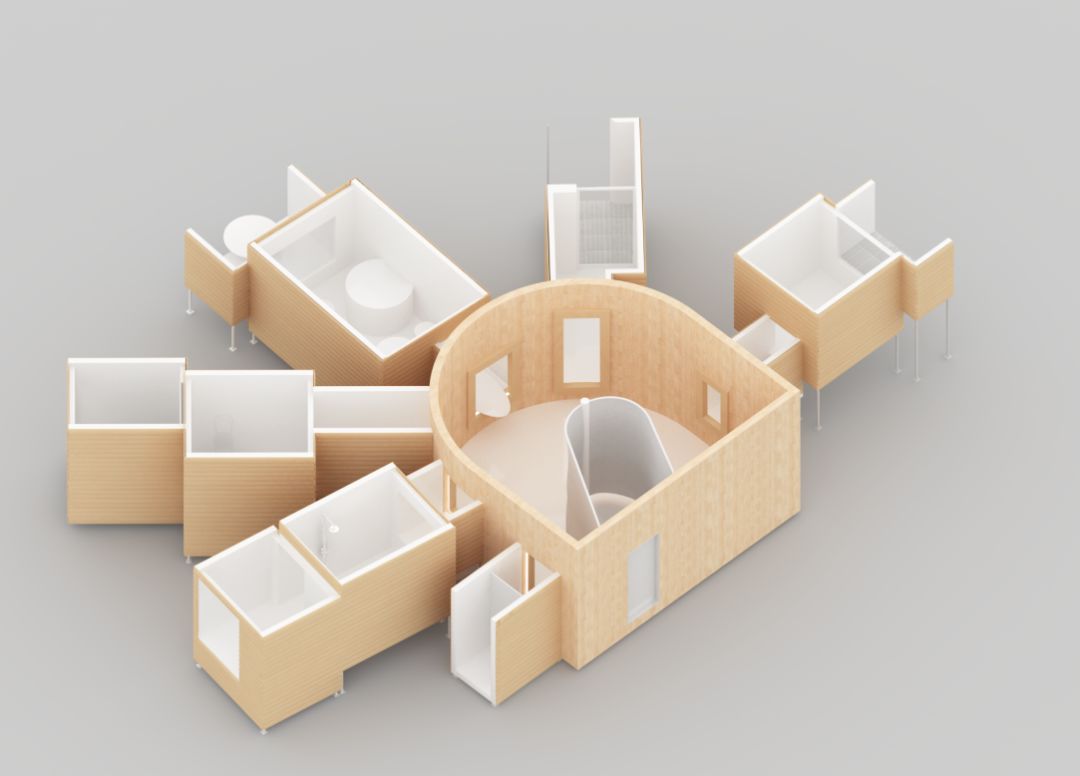 这些窗户中的居住空间承担休憩、洗浴、聚会、用餐等各项功能,各个房间的入口也都使用了窗的感觉,离地有一定高度,需要登上去或爬上去。
