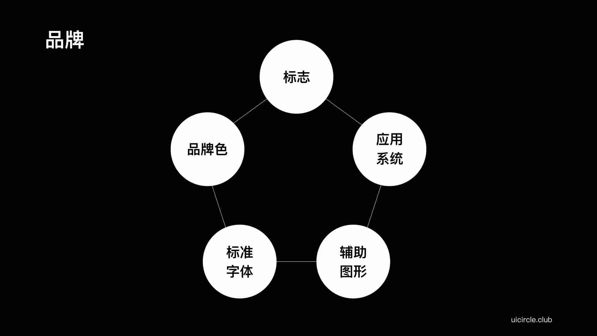 一套品牌的 VI(visual identity) 最重要的是包含标志、品牌色、标准字体、辅助图形及应用系统。