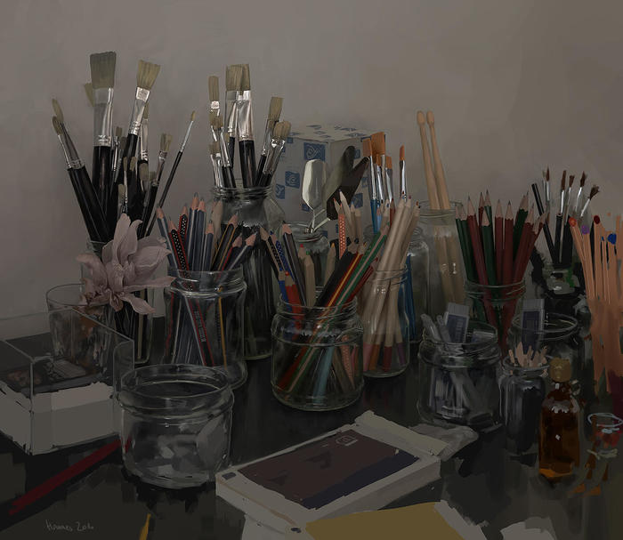 2007年,19岁的德国少年Johannes Voss开始自学画画(一直叫他少年少年的,算起来也就比我小一岁),一开始画了光与色,和一些日式漫画的涂鸦,但是他自己发觉这些达不到他的目标,于是找了Gottfried Bammes(注:Hammes是谁?一个德国老头,中国人叫他“巴莫斯”。干嘛的?一个美院的解剖教授。)的书,以及一些辅助练习画人体动态的工具开始了自己的踏踏实实的绘画成长之旅。