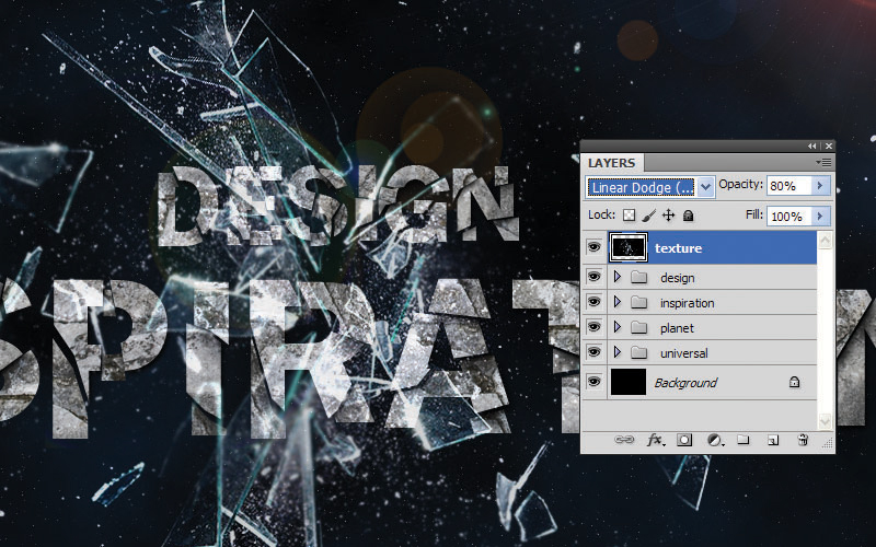 同样的纹理和立体感的表现应用于下面的“inspiration”,所有的文字都完成了