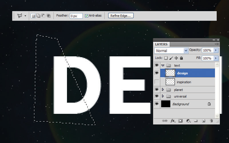 这样的立体感的DESIGN文字完成了,下一个就是INSPIRATION字符,方法也相同