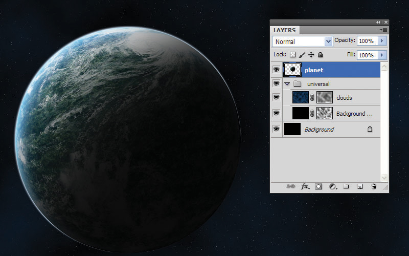 宇宙背景分组。地球的图像背景去除后,宇宙层命名为planet