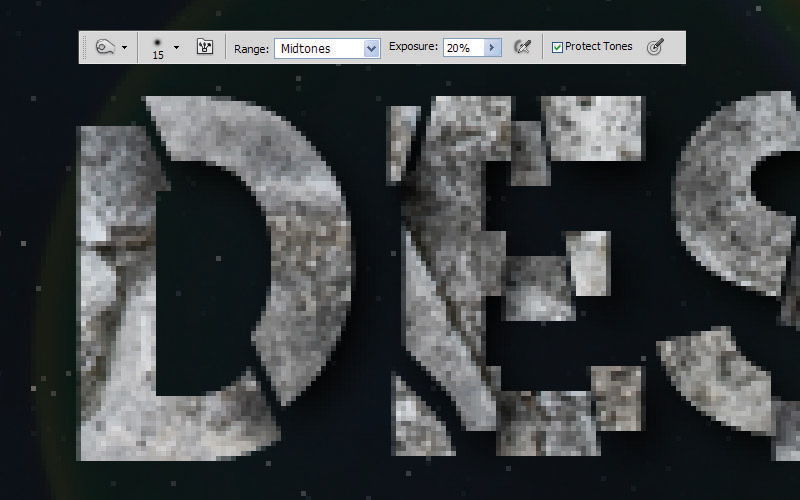 下面的图片可以是粗切石或墙壁纹理纹理,为了方便,已经准备好一张。在有质感的裂缝上,选择合适的纹理按文字的裂纹上拼。