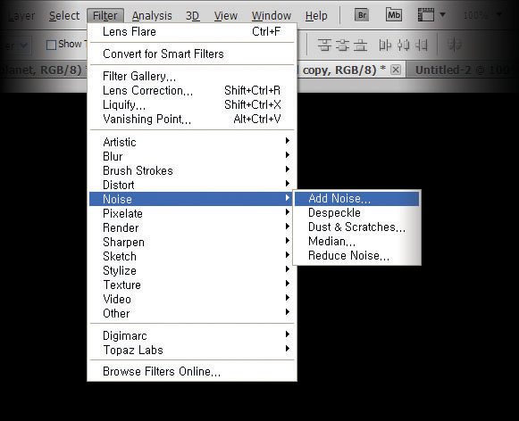 选择菜单栏上的 滤镜 > 杂色 > 添加杂色