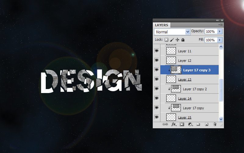 这次我们学习粉碎视觉效果,讲解一下大体要做过程,首先把宇宙的背景表现出来,然后通过滤镜合成宇宙行星的效果,选择好合适的文字之后,经过粉碎后添加纹理,最后将文字图层全部合并。粉碎效果需要重复很多次,方法是不难的,只要用心跟上教程的内容就可以了。