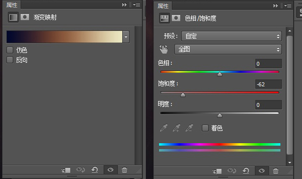 调色的色值,渐变映射的颜色值:#01072c #85853a 47% #ebe8c1