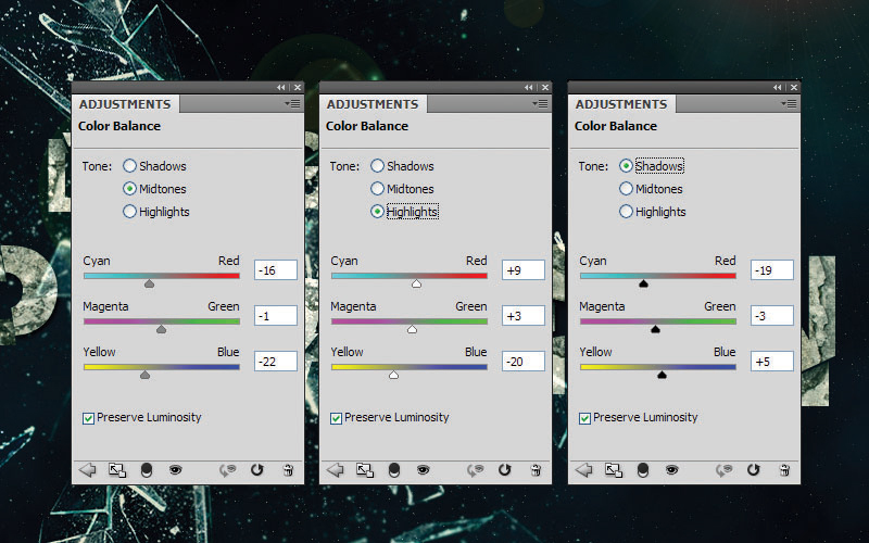 中间调:-16 -1 -22 调 光:+9 +3 -20 阴 影:-19 -3 +5