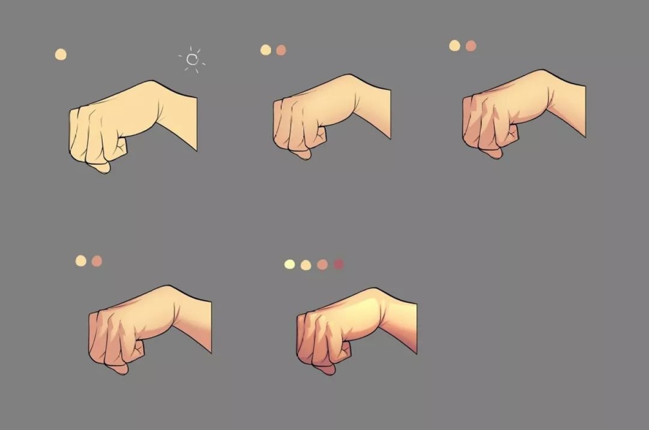 那么下面要讲一讲着色的流程。在着色之前,要先为所有划分色彩的图层都勾选“锁定不透明度”一项。以手部的上色为例