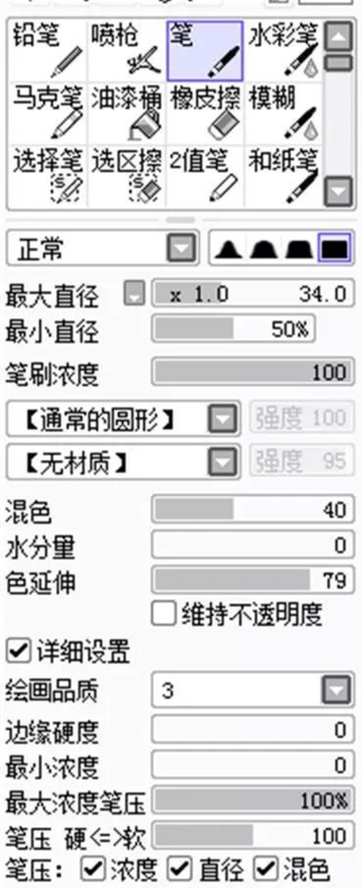 A工具基本上就是默认设定,没有什么变化。我对笔刷的设定并没有什么太深入的研究,所以会尽量利用已有的东西。
