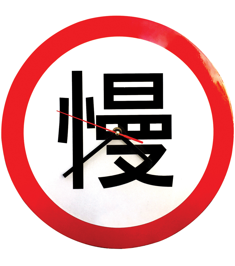 这个作品是我自己亲力亲为的,因为是个人的展览,所以做得特别用心,也要感谢很多朋友帮着一起完成。个展的核心图标是一个大家都很熟悉的“限速三十”交通警示图标。30km/h是行车中比较慢的速度,非常消耗油料,就像我当时的状态。30岁,对于中国人有着特别的含义,我想在这个特别的年份,能够慢下来,整理过去,规划未来。展览主要物料是用传统搪瓷工艺制成,它让我想起小时候用过的搪瓷水杯,带有时间的温度,因为这种工艺的局限性,有一半的工序都是靠人手工完成的,所以出来的每个产品都会有细微的差别。这批搪瓷物料是在温州一家老的搪瓷厂生产出来的。