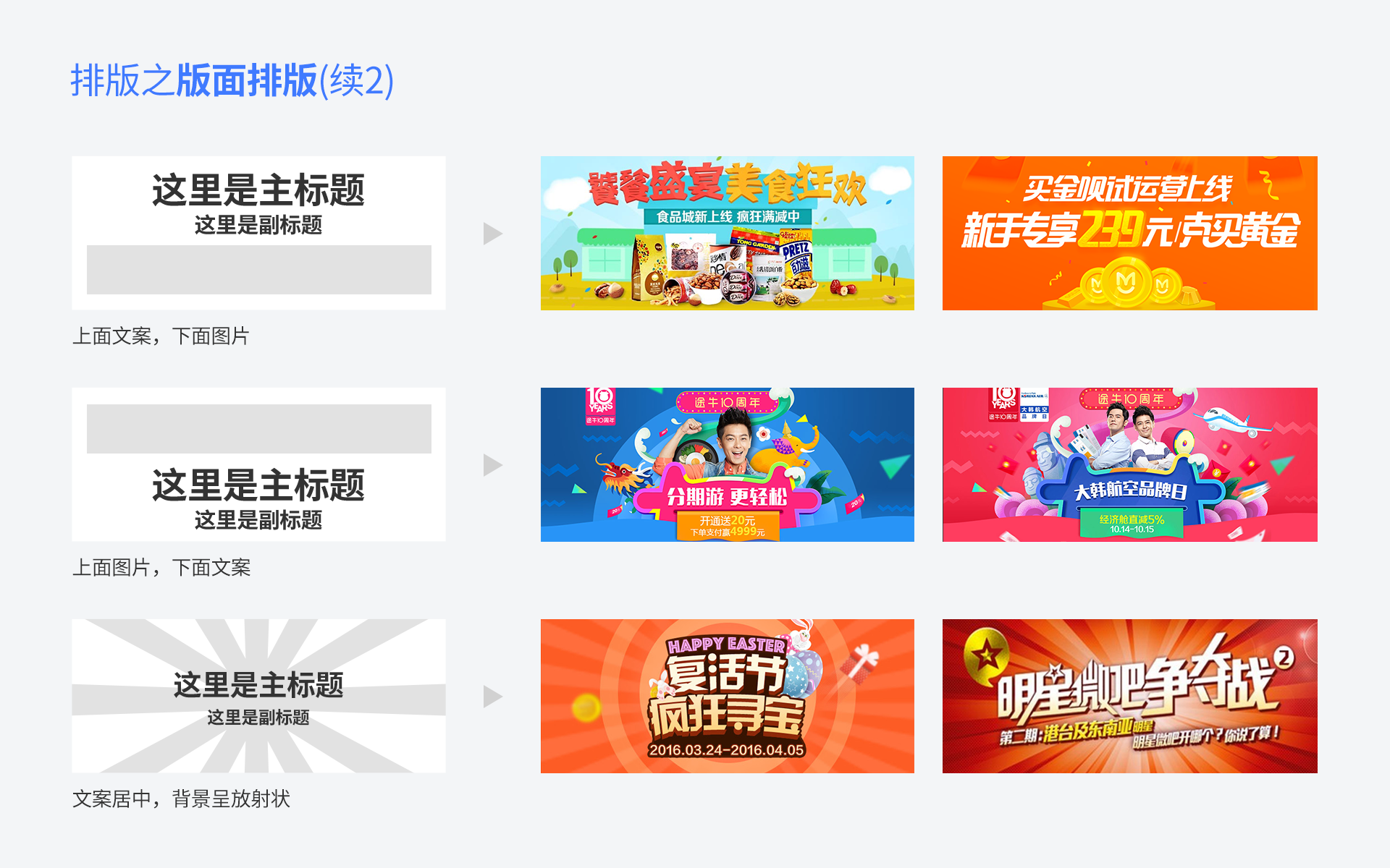 最近运营banner做的比较多,总结了一些banner设计过程中的一些技巧与方法,图来自于网络,仅供学习交流,侵删。