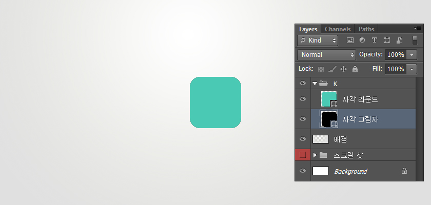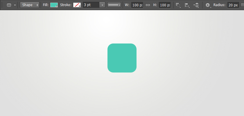 选择矩形工具。大小为100px,半径为20px,色值:#4ac9b4