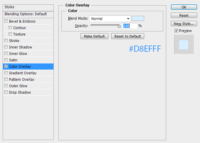 选择颜色叠加,色值为:#D8EFFF