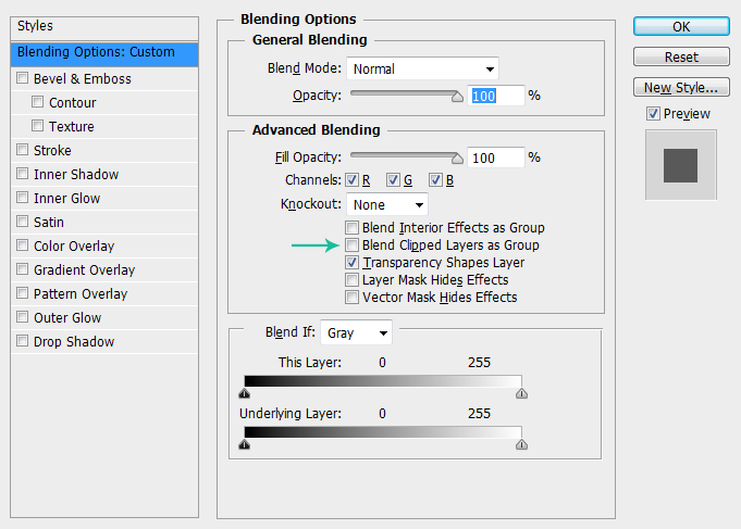 将面版中的高级混合选项中”将剪贴图层混合成组“的部分取消勾选
