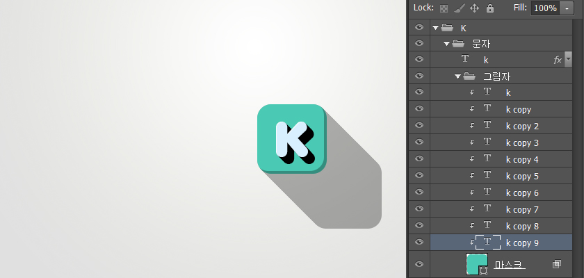 现在,通过复制图层副本和以1px移动的方式做出切实的影子,做法跟上面讲的方式一样,总次数为10次。如图所示