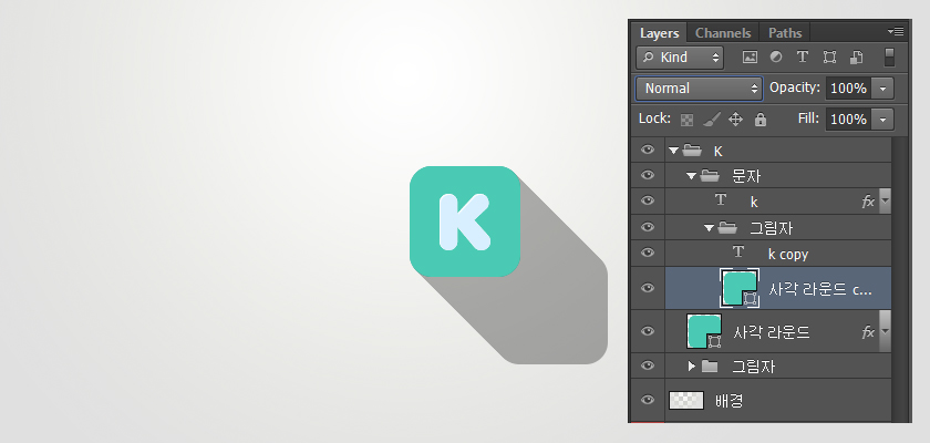 快捷键ctrl+j,复制一层,形状填充黑色,ctrl+G并到一个组里,命名为“ K ”,双击第一个矩形图层调出图层样式