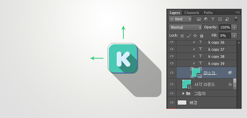 为了解决重叠部分的遮罩层,选中副本矩形图层,移动4px,分别向左和顶部移动。