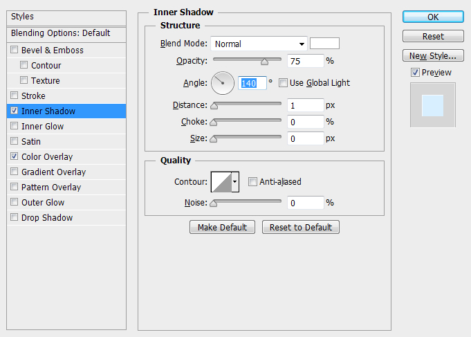 下一步,选择内阴影,数据如图。记得不勾选“使用全局光”。
