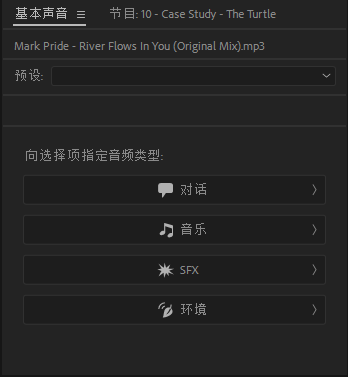 而这个新功能实现起来也很简单,首先打开【基本声音】,将对话和音乐的音频指定好类型(其实这一步就是告诉电脑哪个音轨是对话哪个是音乐)。