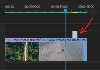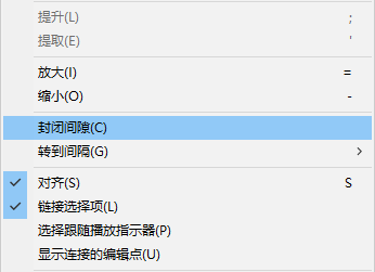 选中片段与片段中间的间隔,当处于红色状态下按下右键,在下拉框可以快速添加过渡效果。