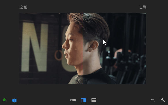 另外的,Premiere Pro这个比较视图现在也加入了垂直划相和水平划相,方便我们看调色前后的对比。