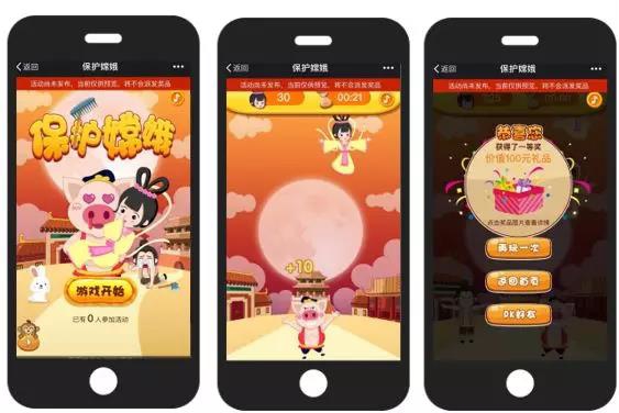 划重点:借用中秋寓言“嫦娥”故事,打造互动小游戏,娱乐性与互动性高,可设置分享与奖励机制,参与即可进行抽奖,吸引用户参与。