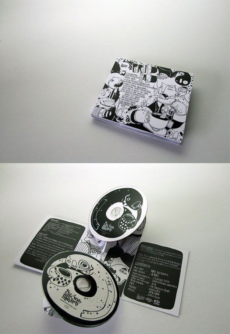 再次感谢模切技术,能使光盘成为设计的的重点。看看这个例子,将封套上模切一个精心定位的、带形状的窗口,使得色彩缤纷的盘面能够透过窗口展示出来,并创建自己的视觉元素。