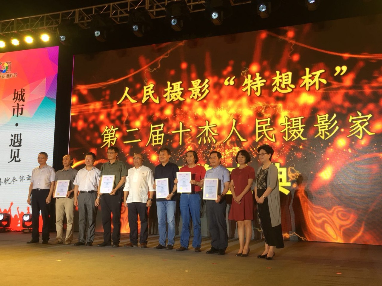 宁波市文联党组书记、副主席王晓勇;宁波日报报业集团党委副书记、总编辑金波;宁波市文联原党组成员、副主席何微;人民摄影报社社长、总编辑李涛;特想集团董事长刘绚强为人民摄影“特想杯”第二届十杰人民摄影家颁奖。