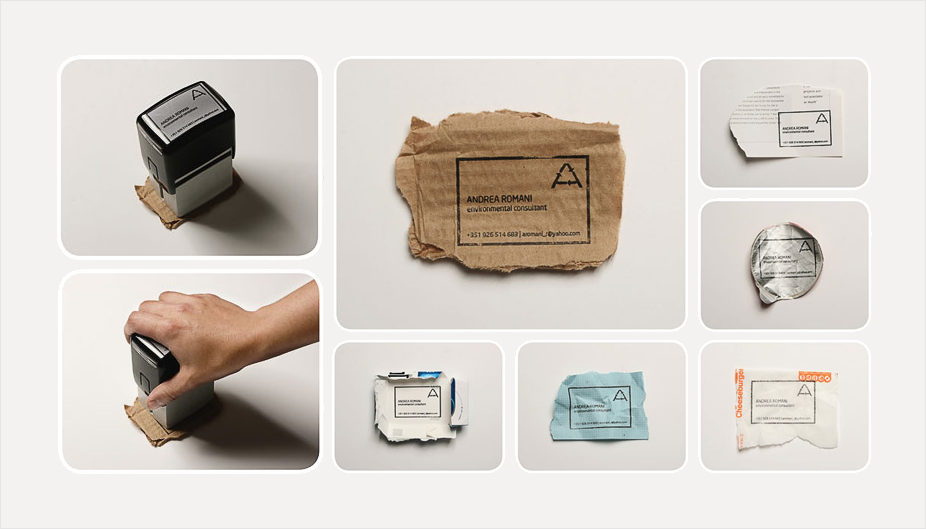 对于那些希望真正从在人群中脱颖而出,有这种生态名片的邮票,可以在几乎任何类型的纸或回收材料进行打印。注意:这不适用于所有类型的业务; 只有那些想要注重环保意识的人。