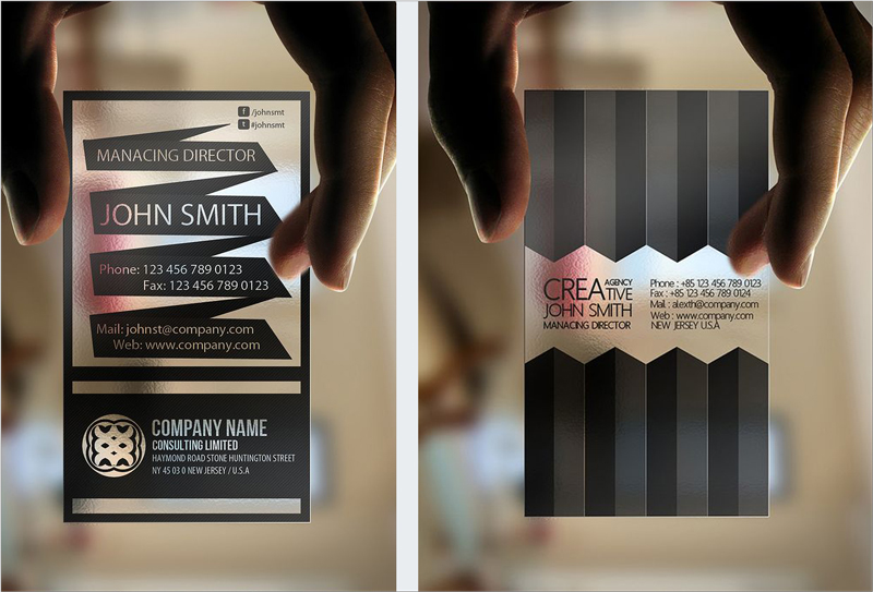 另一种越来越流行的趋势是使用由特殊聚合物塑料制成的透明或半透明名片,当光线通过时会散射光线。从半透明卡片到磨砂卡片,可满足各种口味。