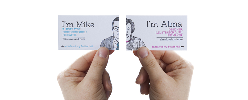 赢得营销理念的另一个例子就是这套丈夫和妻子的名片,它们就像这对可爱的商业伙伴一样完美地相互补充。
