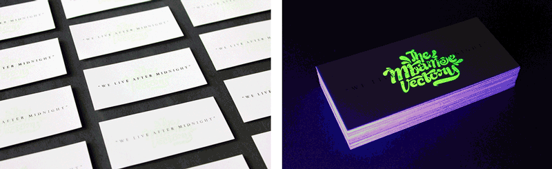 如果你认为这些名片中的一些想法有点不合时宜,那么请看一下这种黑暗中的发光设计。使用磷光油墨印刷,这张卡有效地突破了你可以在夜晚或白天的任何时间打电话给他们。