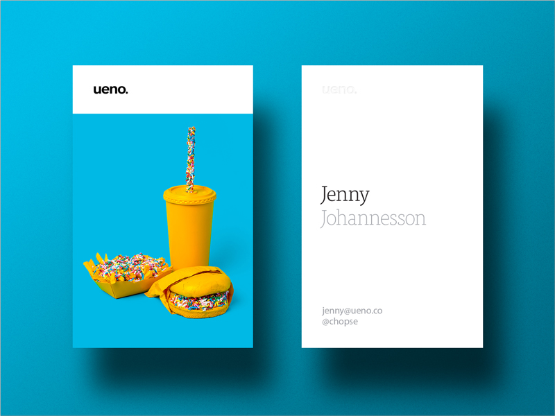 在适当的情况下,你也可以打出一个可爱和非正式的语气,就像这个带插图的名片一样。在黑白照片上使用鲜艳的色彩也使设计流行并脱颖而出。
