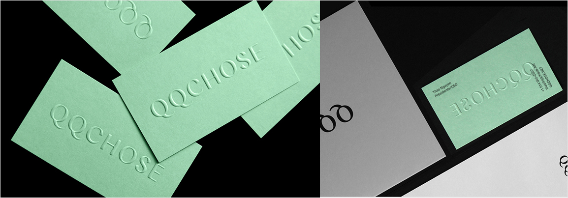 这张在线零售店的名片也采用盲目凸版印刷,并采用优雅的薄荷色,符合品牌的标识和整体外观。
