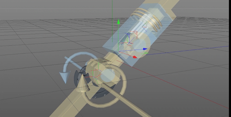 7 关系都捋顺了,跟喷焰器的总克隆网格排列模式弄4个。然后就是开始做动画了。 轴心加个驱动器,注意驱动器的方向,扭矩给一点。随意。