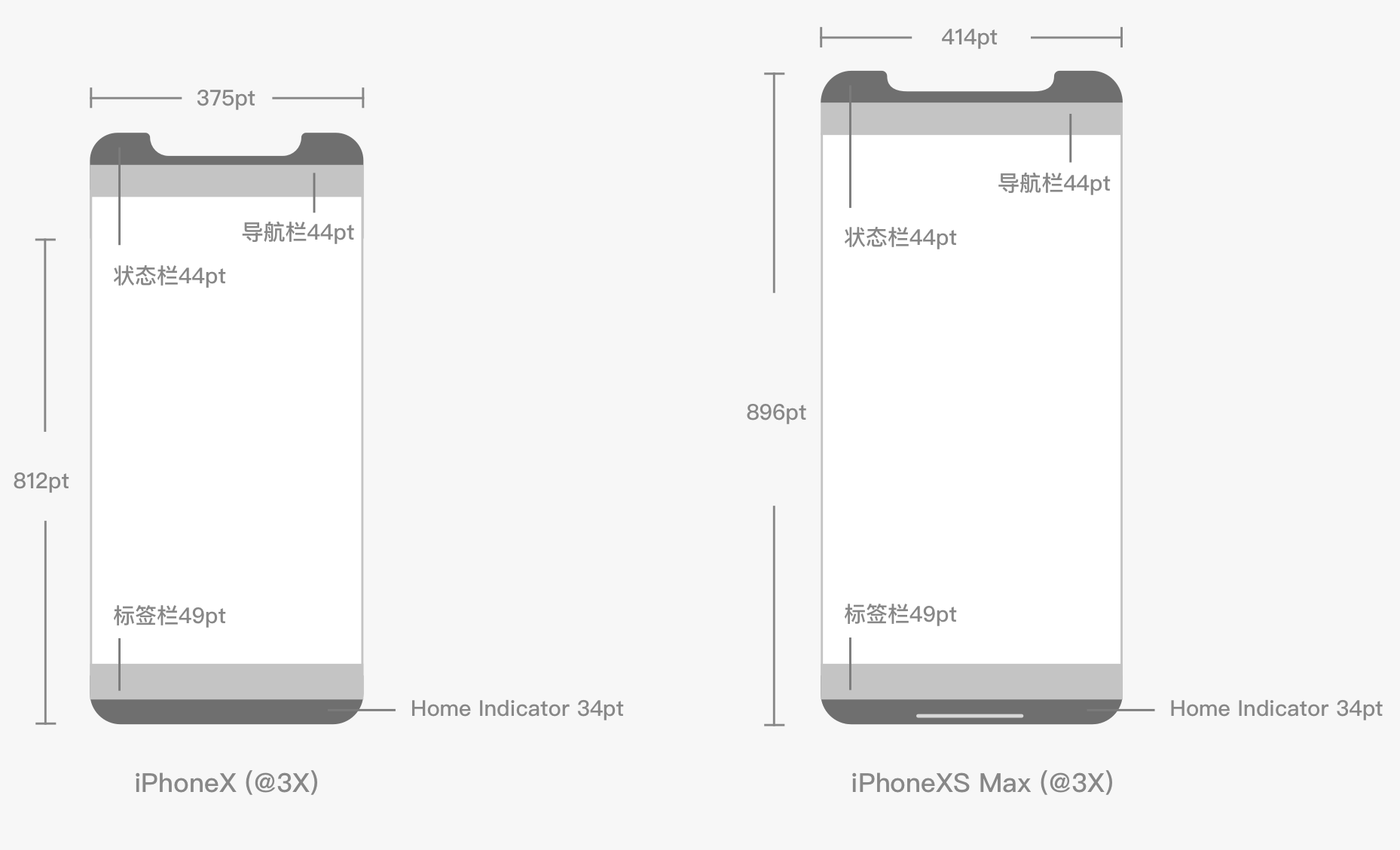 新发布的iPhoneXS、XS Max、XR都采用了全面屏设计,因此我们必须保证布局填满屏幕,并且考虑到交互操作,要留出安全区域,才不会被圆角、刘海影响使用,布局的左右边距可根据产品自定义,这些点与iPhoneX是相同的。