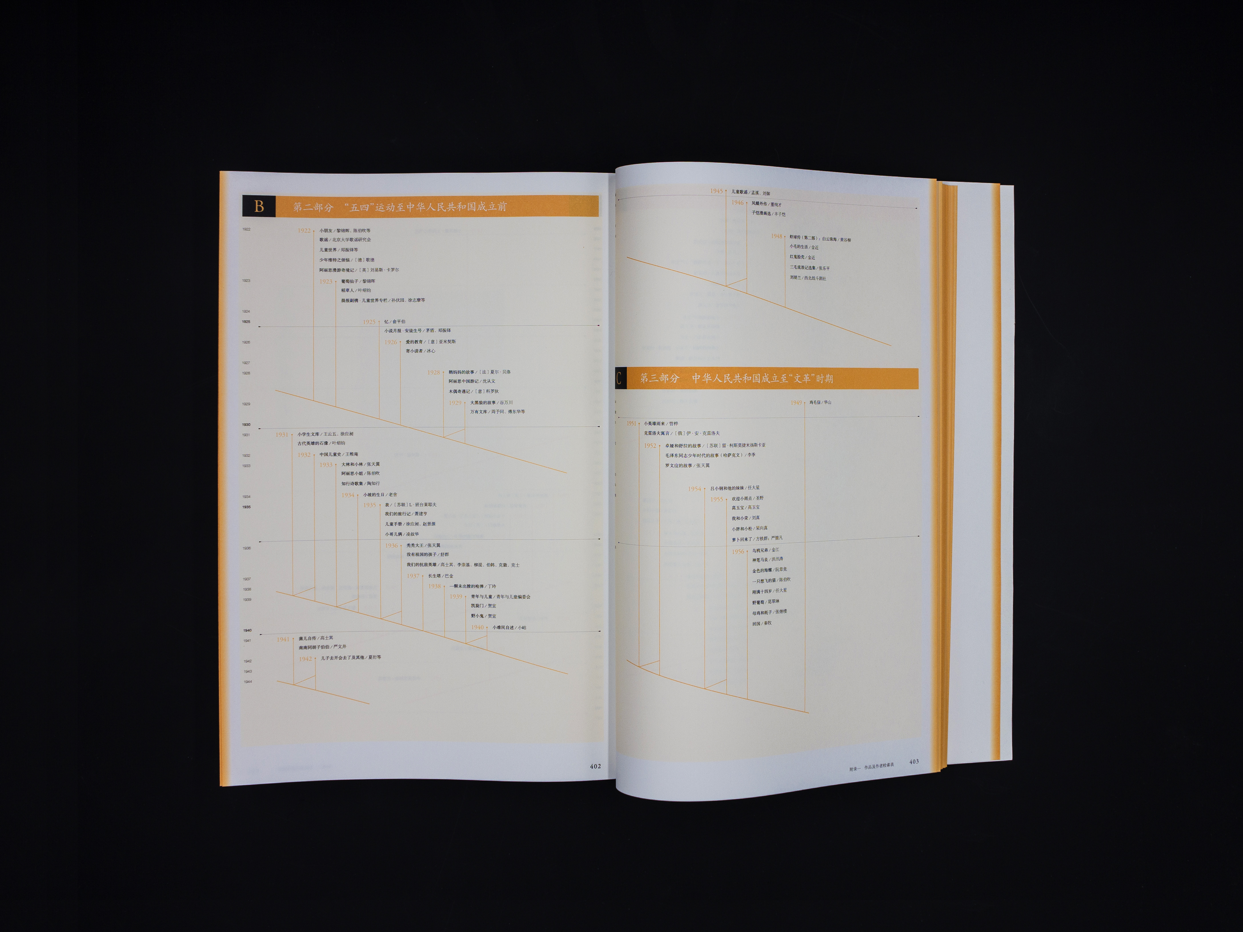 张志奇:这是本以图为主的书,受众比较广泛,孩子和成年人都能看,有图有字,书中介绍的都是不同历史时期在中国出版的经典书籍。书中列举了近一百年中国童书的封面。这本书的设计以封面色彩作为切入点,采集了全书近400本封面的颜色,按照4色印刷原理对每本书的颜色整理和分析出每本的色标,并把隐含在封面之外的大量信息通过信息的关联性呈现出来。以时间段为节点对封面主要用色进行了百分比统计,得出不同历史时期,不同颜色的使用频率,各时期体裁的种类、国家的经济,文化发展息息相关,出版地由南向北迁移等等都能够通过颜色使用的比例体现出来,出版地数量的变化也揭示了中国出版业重心由南向北方的转移。这本书的设计突破以往图录类书籍图片罗列的式设计方式,透过图片表象色彩的串联,揭示书籍的历史背景、政治现状、社会经济发展和文化的现状。透过现象看其本质,研究为何设计也应该是设计的一部分吧。