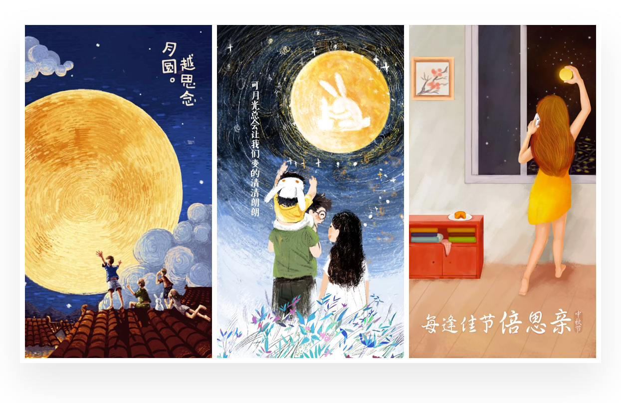 d. 场景插画在中秋主题中的运用