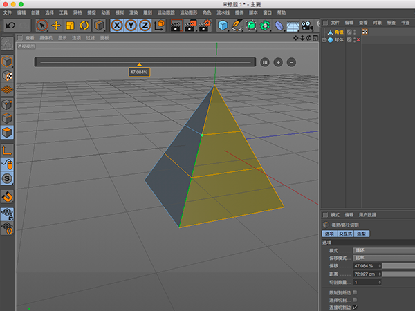 2.制作树冠,形状工具制作一个角锥,按c转换为可编辑模式。进入面编辑模式,使用循环路径切割工具为模型增加面数。然后和石头的制作步骤一致