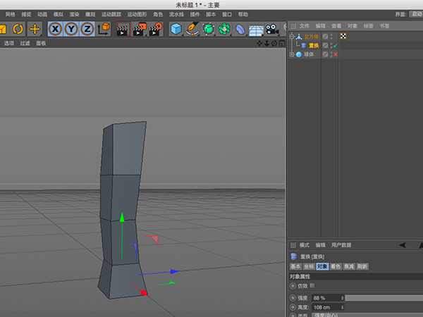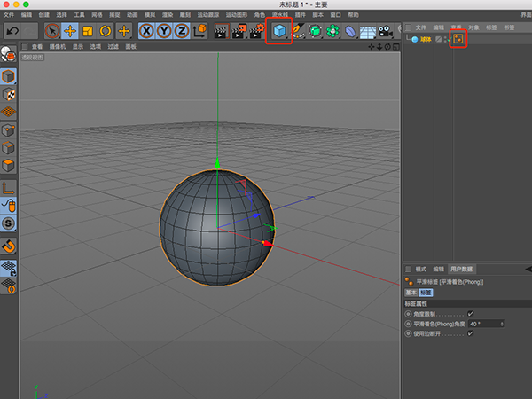 1.形状工具制作一个球体,并删除其平滑标签