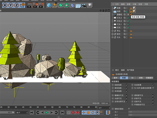 观察原图,其实需要建模的元素只有三种:石头、树木以及草丛