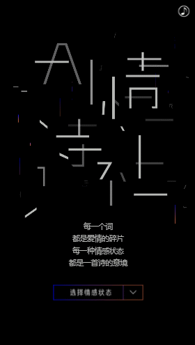 当选择情感状态,长按触发点,短短几秒就能生成一首情诗,接着输入名字后就能“出版”(生成)你的专属海报,适合拿去表白。