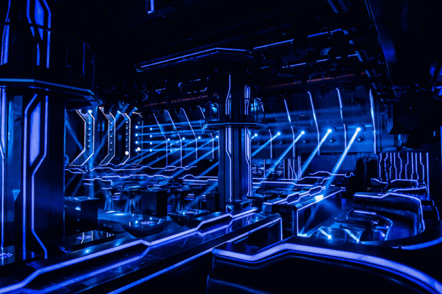 声、光、电完美结合的全感官360°立体环绕,让整体空间犹如未来世界一般,你永远不知道下一秒这个空间会变成什么样。