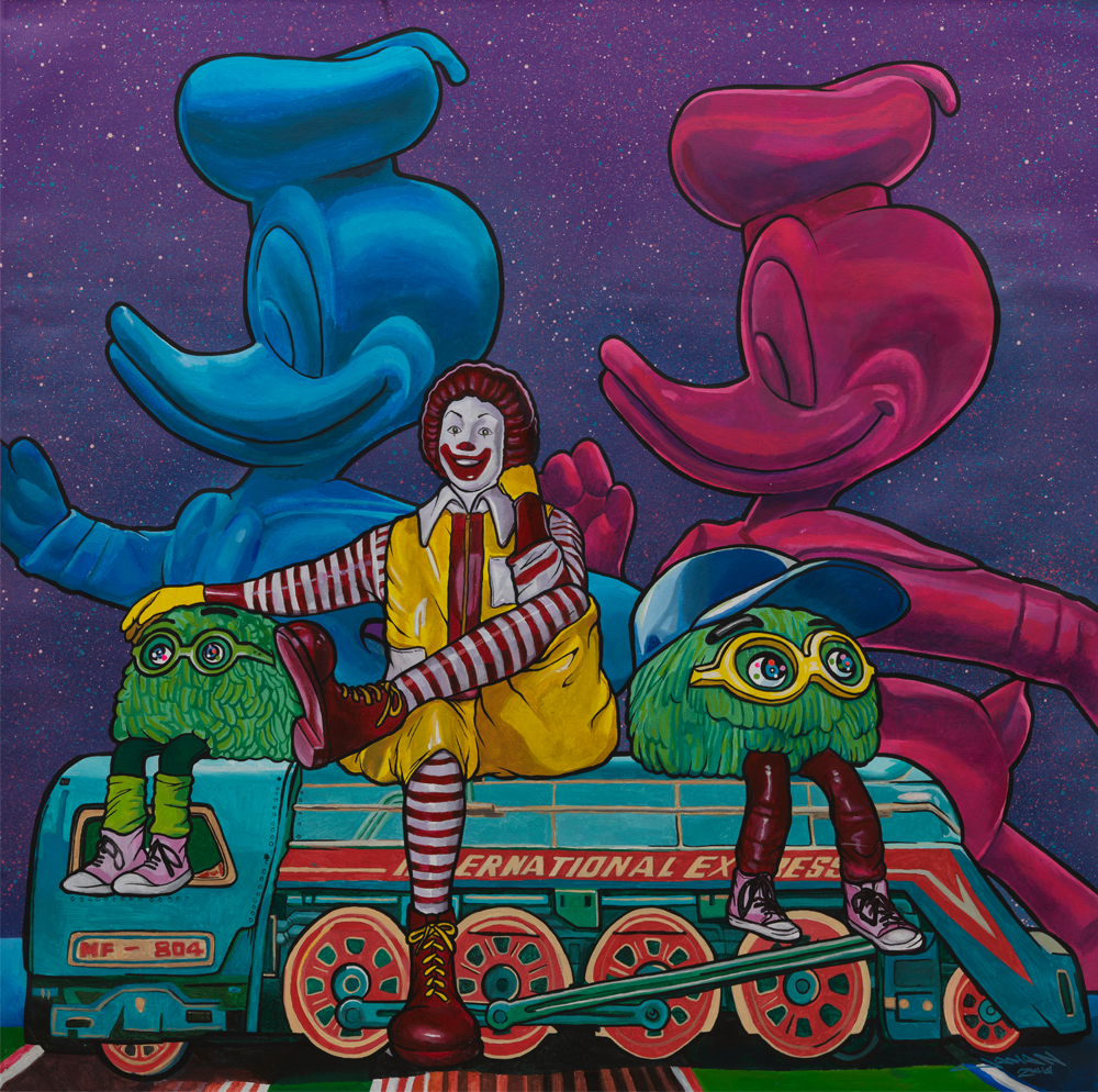 现在,他的主要创作领域是波普艺术,并且,他还经常跨界,与玩具、球鞋及潮流服装品牌合作,如Adidas、Nike、G-SHOCK、Vans、Subcrew、SONY等合作。