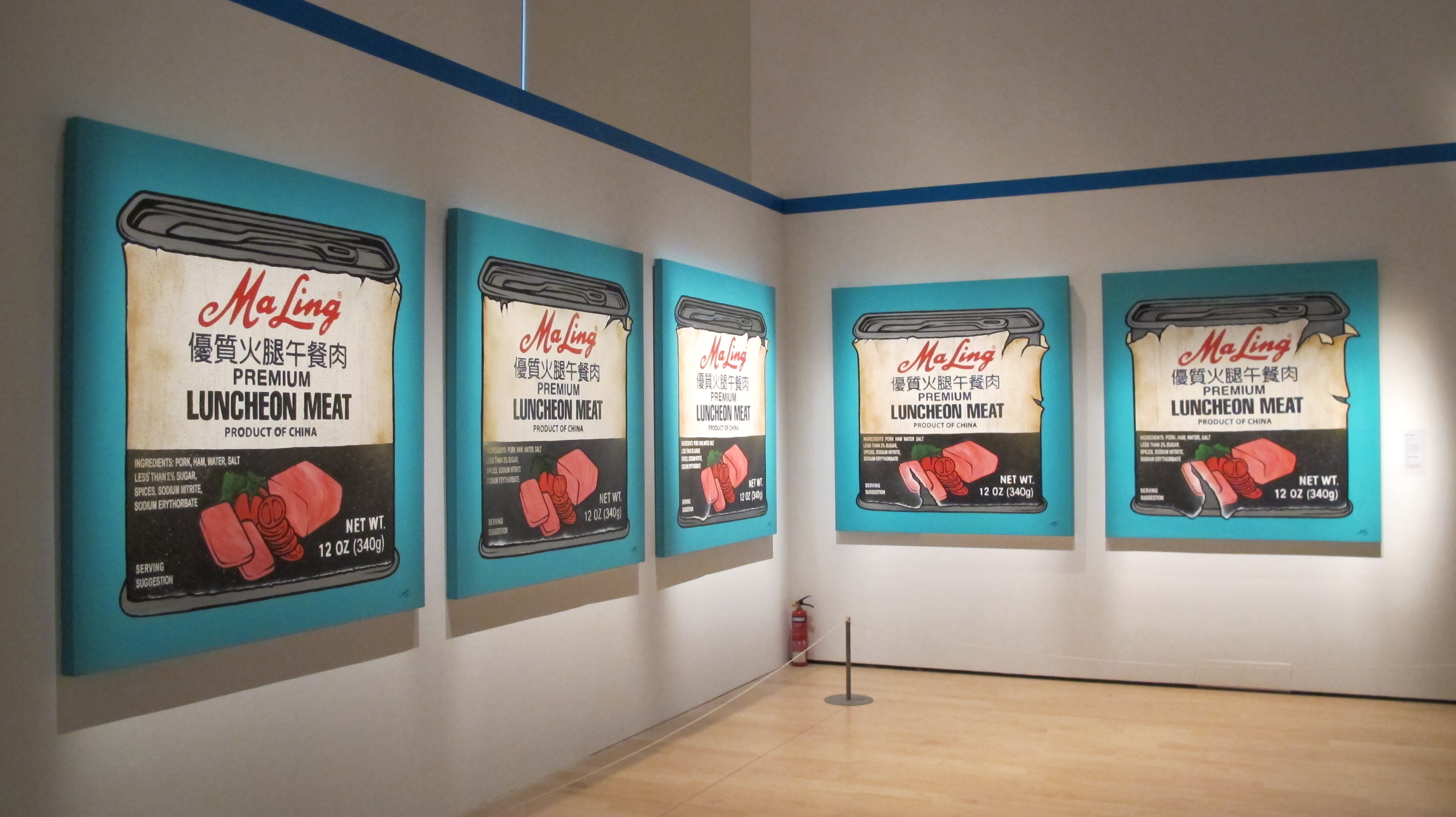 展览前Jahan觉得风景画并不能表达自己想要表达的理念,他想要做一些波普的作品,传达对现代消费概念的认知。他选择不同的媒介,不同于安迪·沃霍尔采用丝网印刷机械式地生产作品,每一幅作品他都亲自绘制,每一个罐头撕裂、磨损的程度各异,在Jahan看来“我们每一个人都不尽相同”。