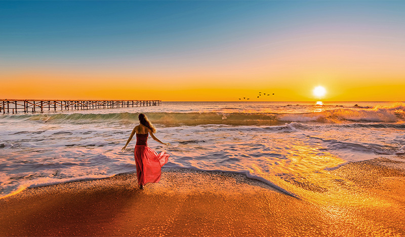 拍摄落日时,要对落日上部测光,但是不能让太阳出现在你的取景器中。如果想让日落看上去比实际晚一小时,可以在曝光补偿中减1。