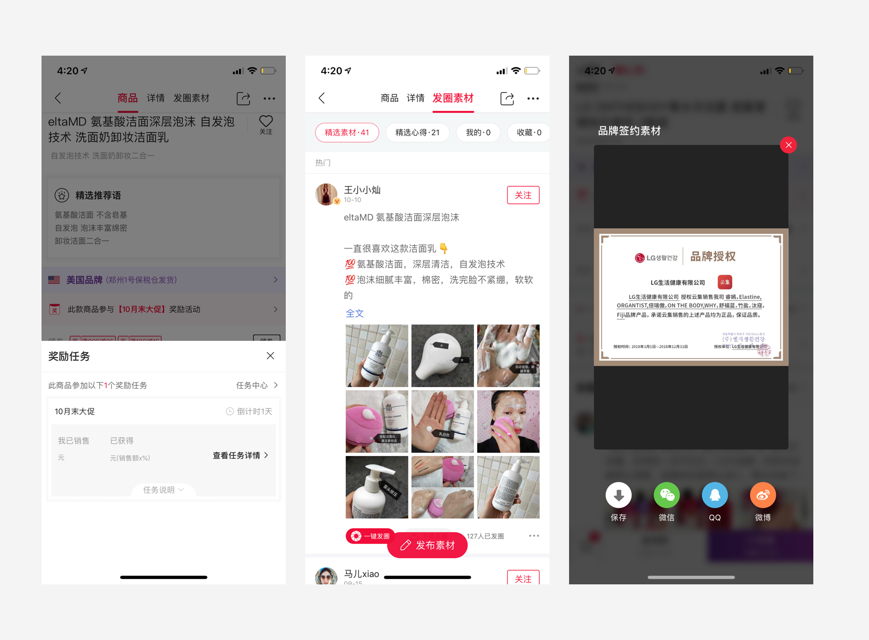 而我们今天讨论的社交电商商详,它能够帮助小b用户与c端用户更高效的链接,不同业务模式下的商详所呈现出来的功能、框架、视觉表现都是有很大区别的,而我们要做的是让买卖双方的关系链更结实。